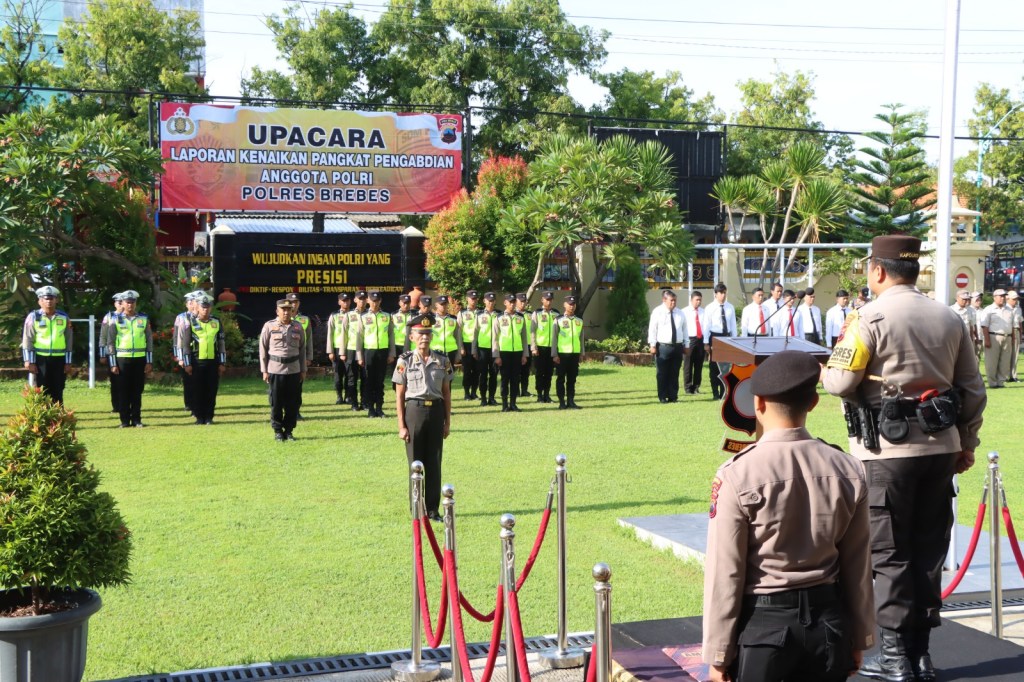 Kapolres Brebes Pimpin Upacara Corps Raport Kenaikan Pangkat Pengabdian
