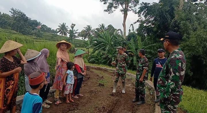Letkol Inf Sapto Broto bersalaman dengan mereka dan langsung mengecek perkembangan pembangunan sasaran fisik disana berupa pembangunan talud, pengecoran jalan dan jembatan.