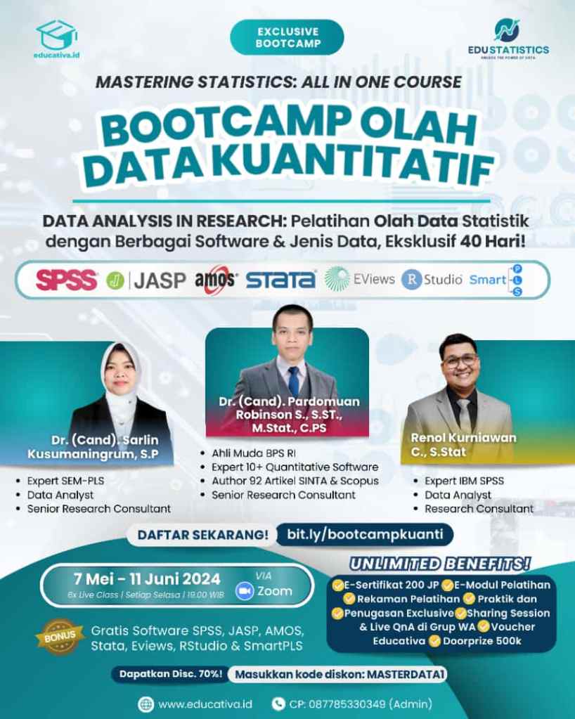 Ikuti Eksklusif Bootcamp Olah Data Kuantitatif ๐ผ๐ก๐ก ๐๐ฃ ๐๐ฃ๐ – Pelatihan olah data statistik dengan materi eksklusif yang ๐ฆ๐จ๐ฃ๐๐ฅ ๐ฃ๐ฅ๐๐๐ง๐๐๐๐, ๐ง๐๐ฅ๐๐๐ก๐๐๐๐ฃ dan ๐ง๐๐๐๐ ๐๐๐๐ก kamu temukan di tempat lain! ๐คฉ