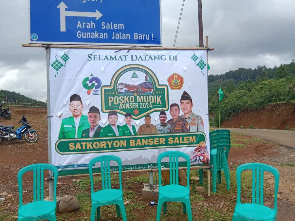 Pimpinan Anak Cabang (PAC) Gerakan Pemuda (GP) Ansor dan Satkoryon Banser Kecamatan Salem Kabupaten Brebes mendirikan Posko Mudik Lebaran 1445 Hijriah. Posko mudik berlokasi di jalur Gunung Lio Kecamatan Salem