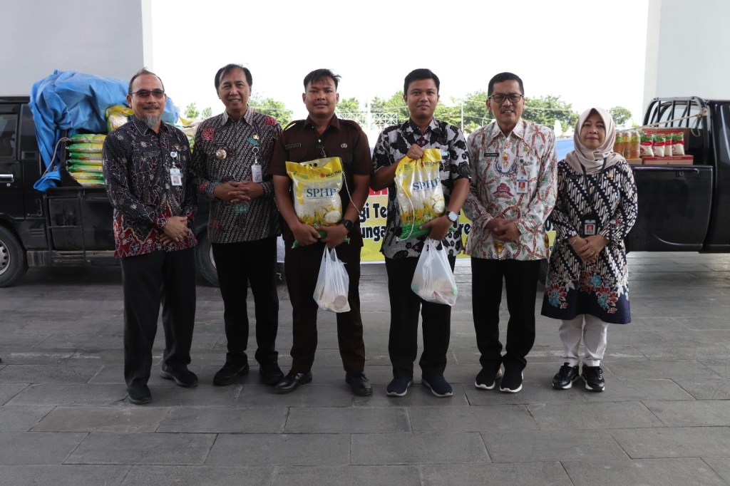 Sebagai bentuk solidaritas Korpri Kabupaten Brebes bekerja sama dengan Perum Bulog Cabang Tegal dan Dinas Pertanian dan Ketahanan Pangan Brebes menggelar Gerakan Pangan Murah (GPM) bagi para Tenaga Harian Lepas (THL). GPM dibuka Penjabat Bupati Brebes Iwanuddin Iskandar SH M Hum di lobi Kantor Pemerintahan Terpadu (KPT) Brebes, Kamis (4/4/2024).