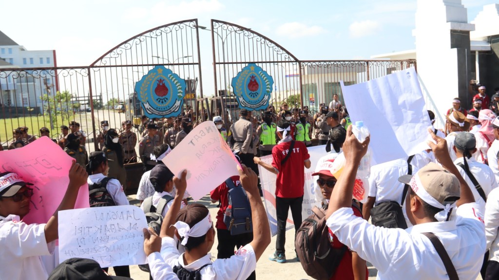 “Kita dari kepolisian sudah fasilitasi supaya baik itu dari pihak Pemerintah Daerah dan perwakilan pengunjuk rasa dapat bertemu, apapun tuntutannya sampaikan dengan tertib. Dan alhamdulilllah selama pelaksanaan aksi berlangsung dengan tertib dan kondususif,” terang Kabag Ops.