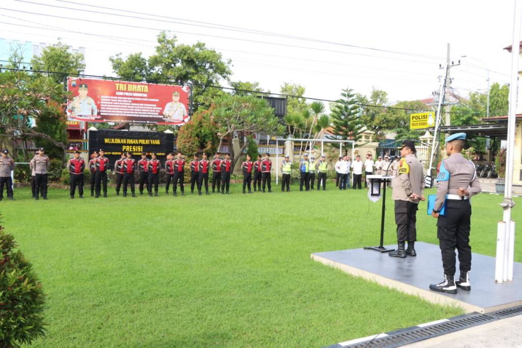 Atas Brebes – Kapolres Brebes AKBP Guntur M Tariq memimpin apel jam pimpinan yang dilaksanakan di halaman Mapolres Brebes, Rabu (24/4/2024).