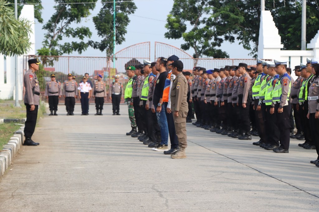 Brebes – Ratusan personel gabungan dari TNI Polri, Satpol PP dan Dishub menggelar apel kesiapan pengamanan peringatan hari buruh internasional (Mayday) di Kabupaten Brebes, Rabu (1/5/2024).