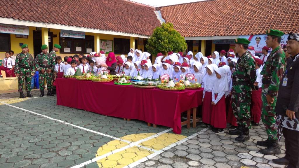 Hari Pendidikan Nasional, Anggota Koramil 09 Tonjong Makan Tumpeng Bersama Siswa SD Negeri 04