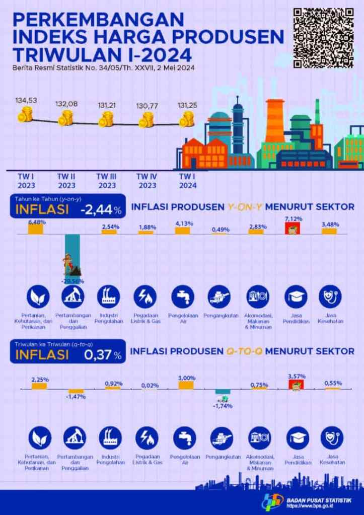 - Perubahan IHPB bulan ke bulan (m-to-m) April 2024 sebesar 0,20 persen dan perubahan IHPB tahun kalender (y-to-d) April 2024 sebesar 1,86 persen.