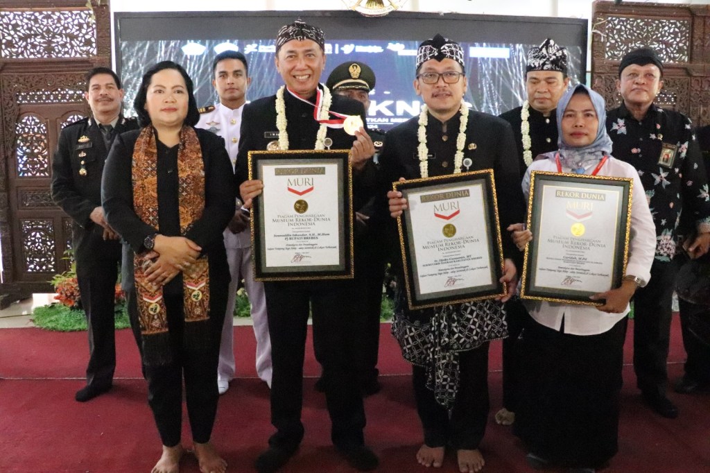 Adapun piagam Rekor Muri diserahakan oleh Perwakilan MURI Semarang Sri Widayati, kepada Pj Bupati Brebes Iwanuddin Iskandar SH M Hum, Sekretaris Daerah Brebes Ir Djoko Gunawan MT, dan Kepala Dinas Pendidikan Pemuda dan Olahraga Kabupaten Brebes Caridah MPd.
