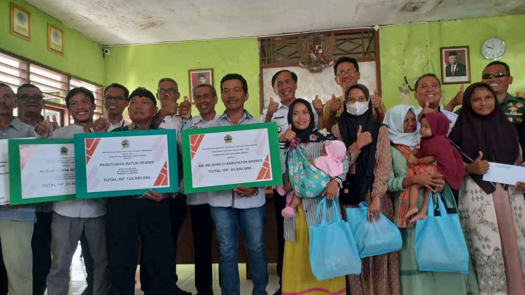 Pj Bupati Brebes Iwanuddin Iskandar SH MHum menyerahkan bantuan sarana dan prasarana bidang perikanan dan premi asuransi nelayan, kepada kelompok dan paguyuban nelayan di Kabupaten Brebes. Digelontorkannya bantuan, untuk meningkatkan kemakmuran dan mensejahterakan masyarakat Kabupaten Brebes. Bantuan dari Dinas Kelautan dan Perikanan Provinsi Jawa Tengah dan Baznas Provinsi Jawa Tengah itu diserahkan Pj Bupati Brebes di Desa Dumeling Kec Wanasari Kab Brebes, Rabu (15/5/2024).