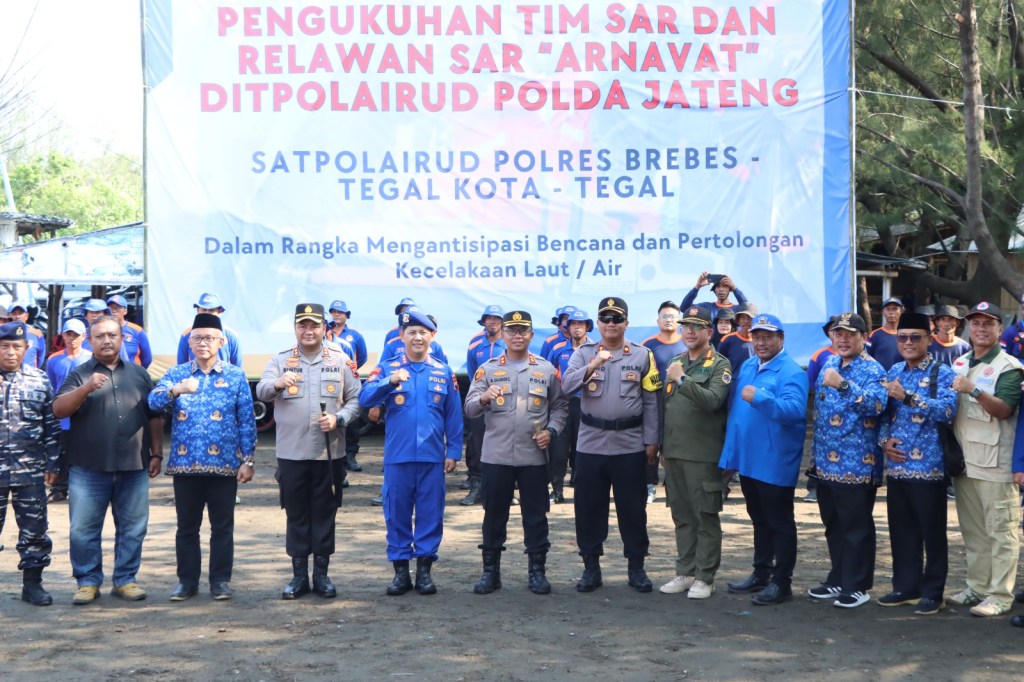 Brebes – Dirpolairud Polda Jawa Tengah Kombes Pol Hariadi mengukuhkan ratusan Relawan SAR “Arnavat” dari 3 (Tiga) Polres yaitu, Polres Brebes, Polres Tegal Kota, Polres Tegal, pada Jumat (17/5/2024) bertempat di Pantai Randusanga Brebes.