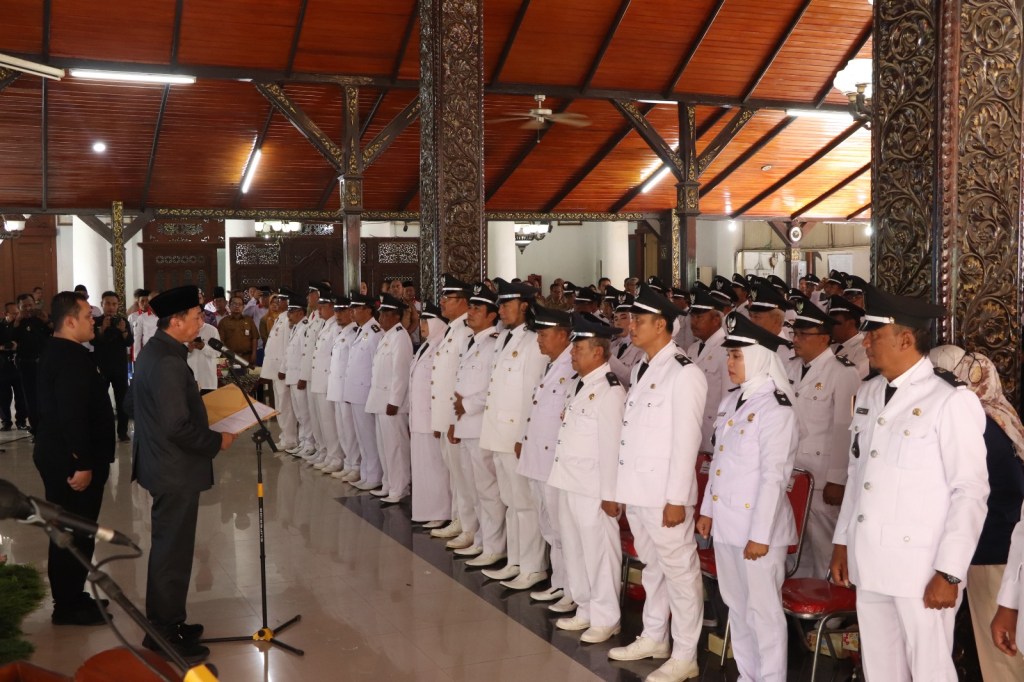 Pj Bupati Brebes Iwannudin Iskandar SH MHum mengukuhan dan menyerahkan surat keputusan perpanjangan masa jabatan kepada 287 kepala desa (kades) di Kabupaten Brebes. Demikian sesuai Undang-undang Nomor 3 Tahun 2024 tentang perubahan kedua atas Undang-undang Nomor 6 Tahun 2014 tentang Undang-undang desa baru, masa jabatan kades diperpanjang 2 tahun menjadi 8 tahun.