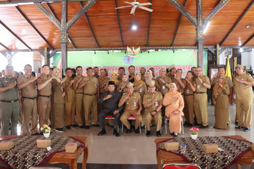 Pj Bupati Brebes Iwanuddin Iskandar SH MHum mengukuhkan Perpanjangan Masa Jabatan Sekda Brebes Ir Djoko Gunawan MT yang telah berakhir per Juni, di Pendopo Brebes, Senin (22/7/2024).