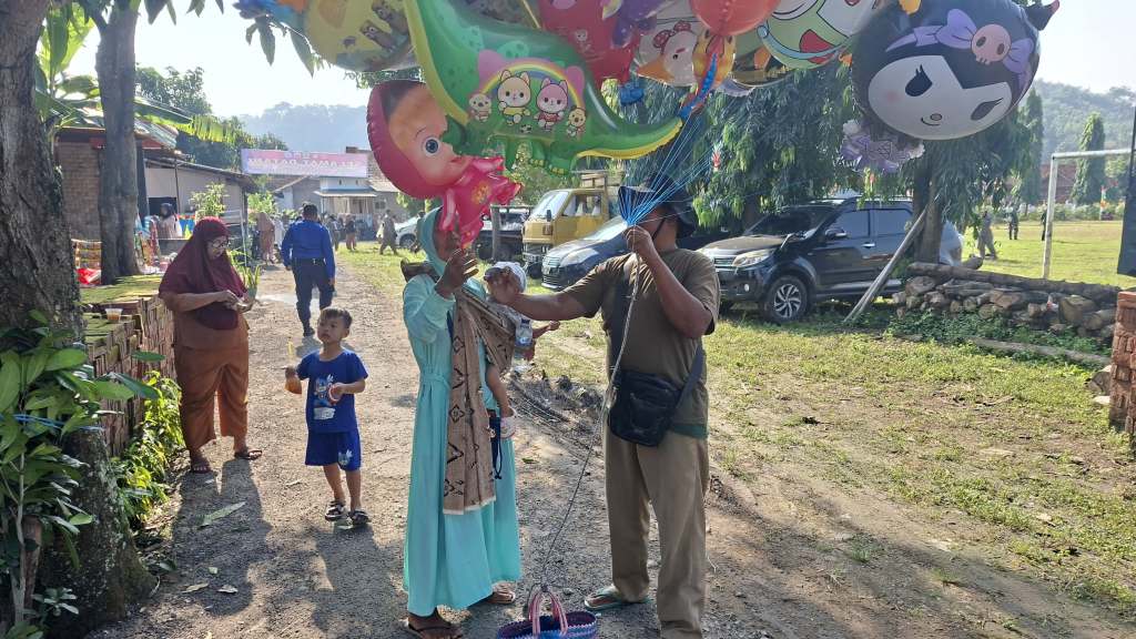 Salah satu yang merasakan dampak instan adalah Tarmudi (52). Pedagang balon keliling asal Dukuhlo, Bulakamba ini sengaja menempuh perjalanan cukup jauh menuju Cikuya karena memprediksi massa akan membludak.