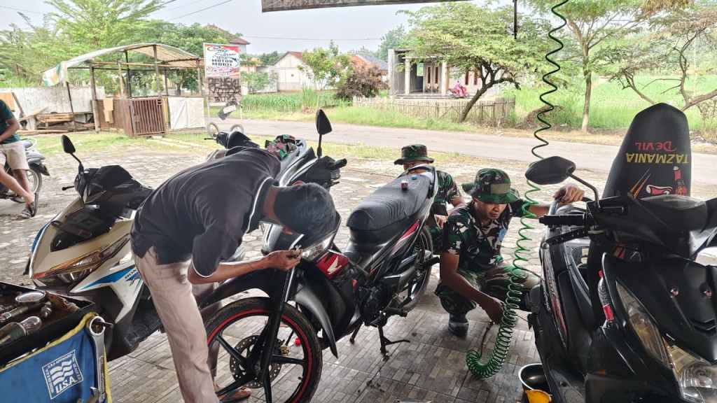 BREBES – Program TNI Manunggal Membangun Desa (TMMD) Ke-127 Kodim 0713/Brebes tidak hanya membawa perubahan pada pembangunan infrastruktur, tetapi juga menghadirkan berkah bagi pelaku usaha kecil di lokasi kegiatan. Salah satunya dirasakan langsung oleh Bang Ali (34) pemilik bengkel sepeda motor di Desa Cikuya yang kini kebanjiran pelanggan.