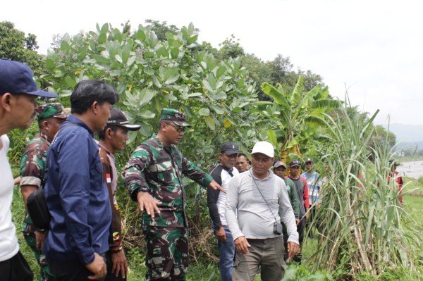 Dandim Brebes Tinjau Lokasi Pembangunan Jembatan Gantung di Desa Kalinusu