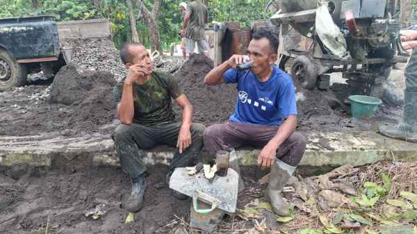 Hangatnya Kebersamaan: Singkong Bakar dan Kopi Hitam Jadi Penawar Lelah Satgas TMMD Reguler ke-127 Kodim 0713/Brebes