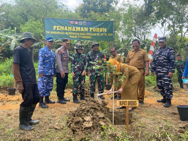 Upaya Pelestarian Alam, Satgas TMMD Ke-127 Tanam Pohon di Cikuya