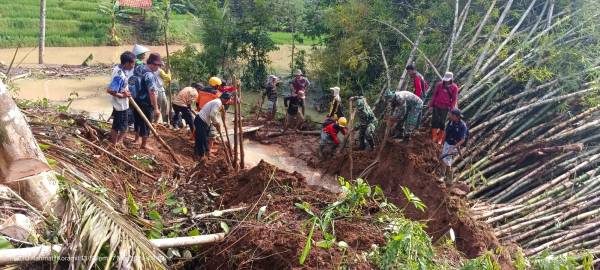 Koramil 13 Salem Karya Bakti Tanah Longsor di Desa Pabuaran