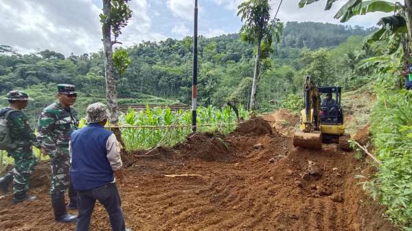 Dandim Brebes Percepat Buka Jalan Pengubung Antar Desa Citimbang - Gunung Sugih Yang Terputus